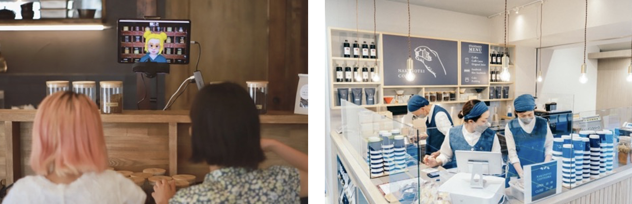 写真左:一般社団法人ニモアルカモ アバター接客の様子