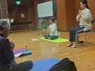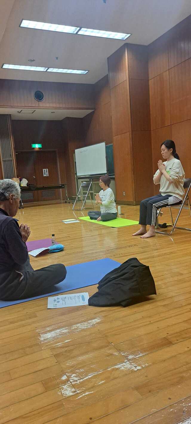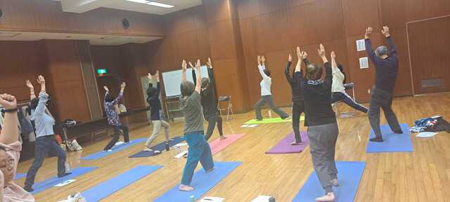 この日の上原社会教育館の体育館には、ヨガ初心者、体が硬いと感じている方、腰痛に悩んでいる方、シニアヨガに関心のある方など、さまざまな背景を持つ参加者が集まりました(最高齢は87歳!)。