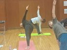 ヒロさんの声に導かれながら、参加者はマットの上でさまざまなポーズに挑戦しました。