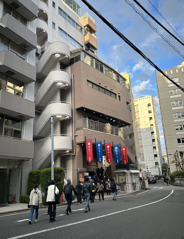 恵比寿社会教育館での授業を終え、恵比寿・エコー劇場へ移動です。お洒落なイメージのある恵比寿とは少し違った風情のコースをまち歩きをしながら向かいました。時間がなく、早足になってしまいましたが、恵比寿の違った側面も見ていただけたのではないでしょうか?私があれっと思ったのは、タコのマークの商店会、それからタコ公園(俗称)があり、なんでタコなのかなあということでした。