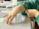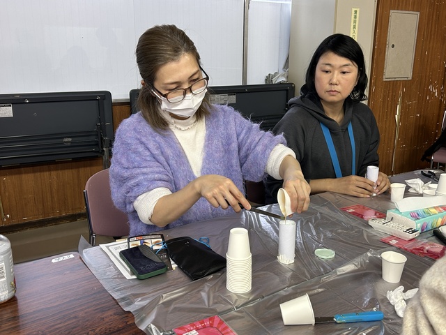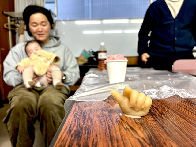 ワークショップでは、人差し指の型をとる人、親指の型をとる人、そして骨折してしまった指の型をとる人など、みなさん楽しみながら取り組みます。