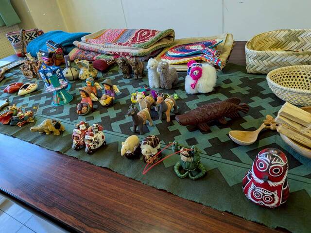 ペルーと聞くと、マチュピチュやナスカの地上絵といった世界遺産を思い浮かべる人が多いかもしれません。しかし実際のペルーは、現在もなお多様な自然、美食、民芸に恵まれた魅力あふれる国です。授業では、スライド写真や解説に加え、現地産のコーヒーやお菓子を味わい、民芸品に直接触れるという、まさに五感で体感する内容となりました。