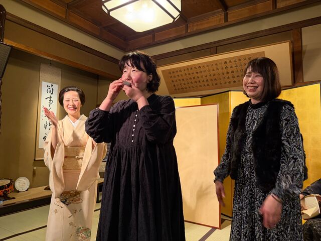 渋谷・円山町の料亭「三長」さん。そして講師には、芸者の瓢屋 小糸姐さん、喜利家 鈴子姐さんと三吉姐さん。歴史ある空間での「お座敷遊び」体験。刺激的な時間を過ごしました。