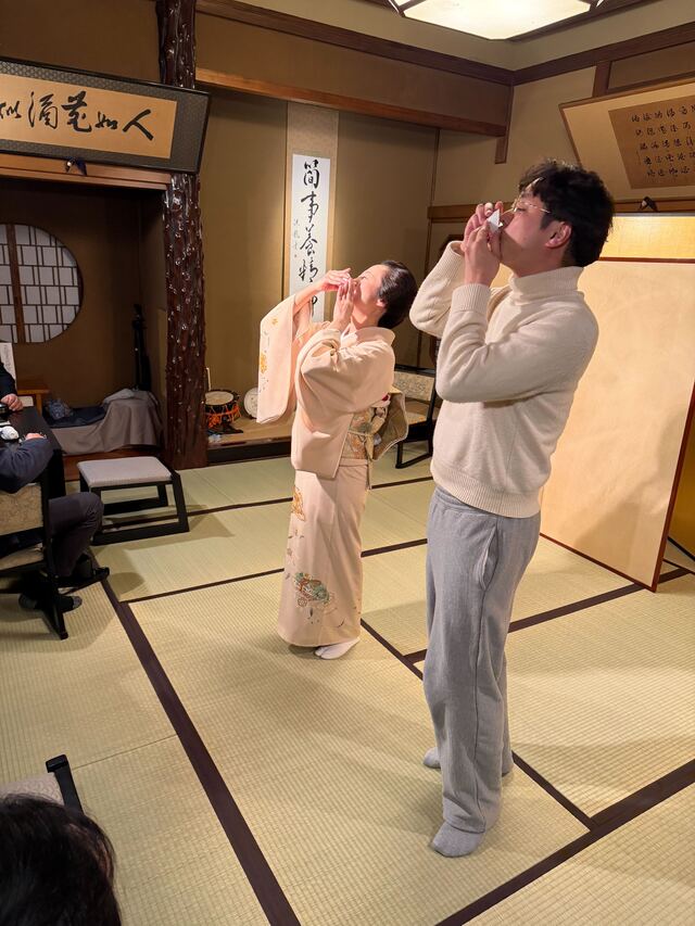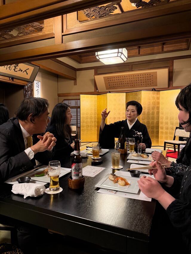 お座敷遊びの醍醐味は、なんといっても芸者衆とのゲームです。「とらとら」は一見シンプルですが、やってみるとこれが意外と難しい!三味線のリズムに合わせて真剣に勝負し、負ければ笑いながら杯を乾かす。そこには、勝ち負けを超えた一体感と、相手を敬いながらも全力で楽しむという、日本文化特有の「粋」なコミュニケーションが凝縮されていました。参加してわかった、文化を「楽しむ」という貢献